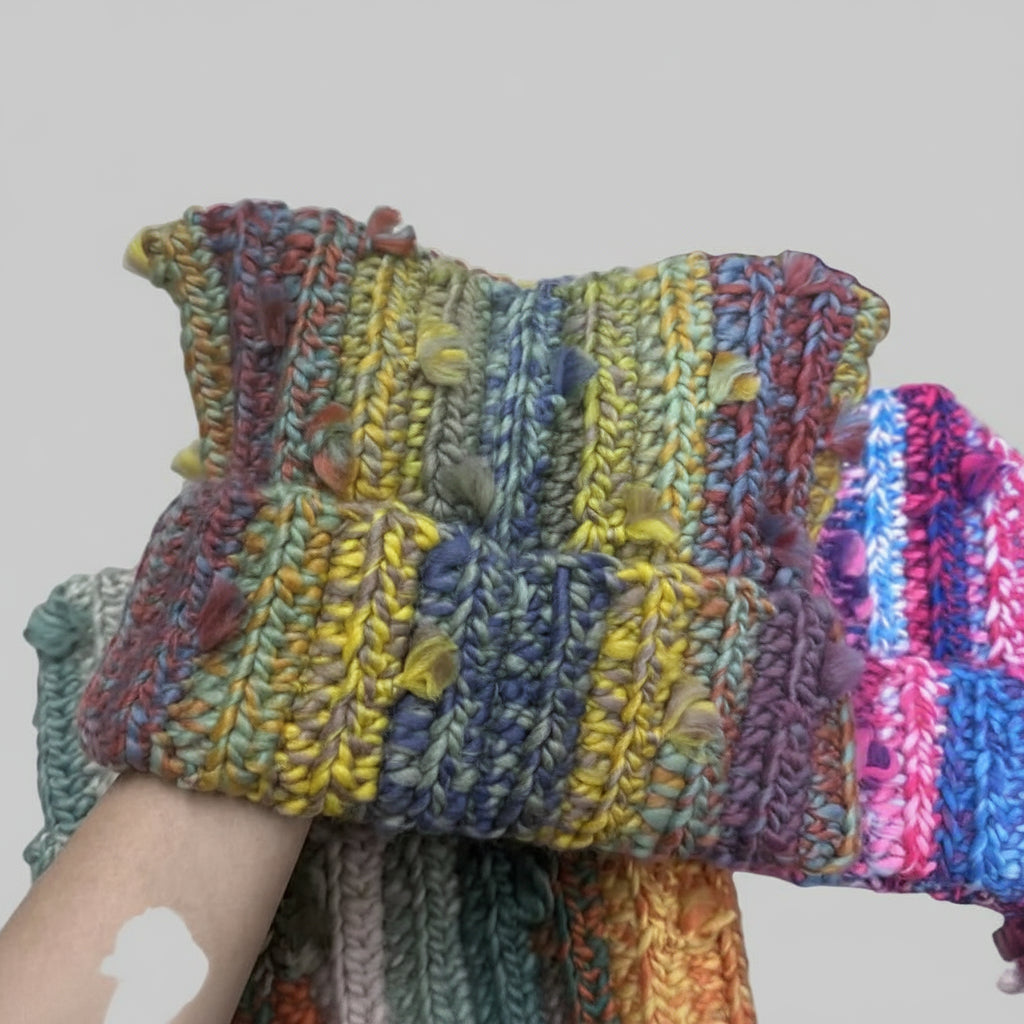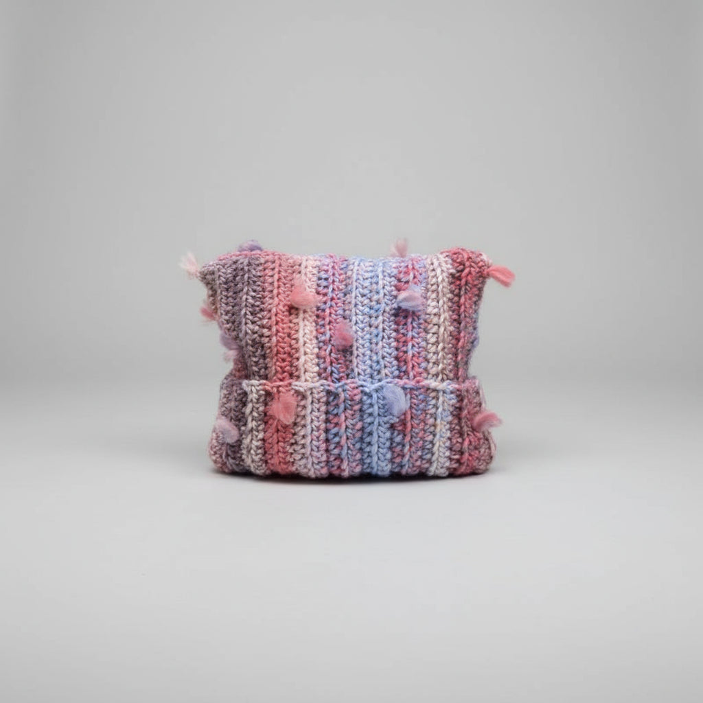 This wool hat features a cute contrasting color tassel design and is handmade with knitting technology. It is elastic-sized, perfect for keeping warm in winter and autumn. Available in various colors including blue yellow, khaki green, reddish yellow, red blue, and pink. Style inspired by Korean fashion.