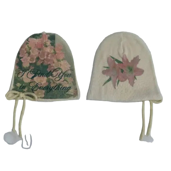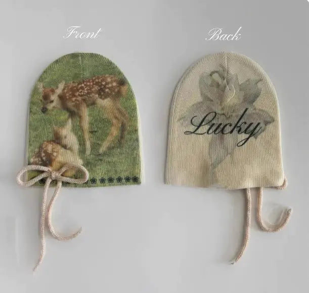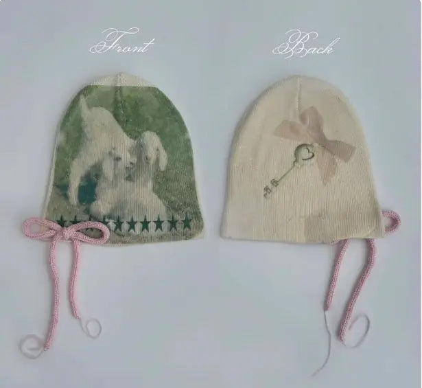 A warm, ear-covering knit beanie with a printed bow design, flattering and versatile for casual wear. Crafted with polyester fiber